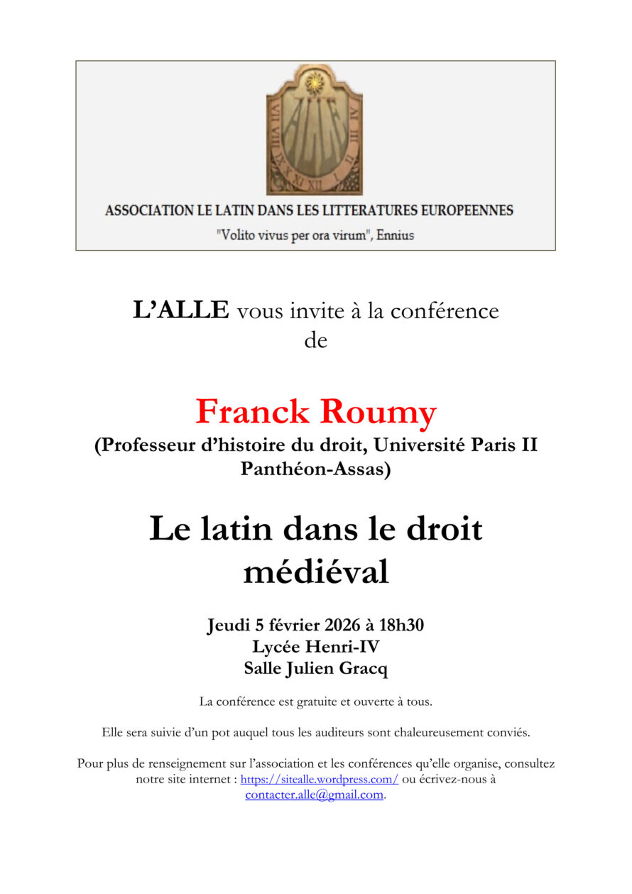 L’ALLE vous invite à sa prochaine conférence de Franck Roumy,